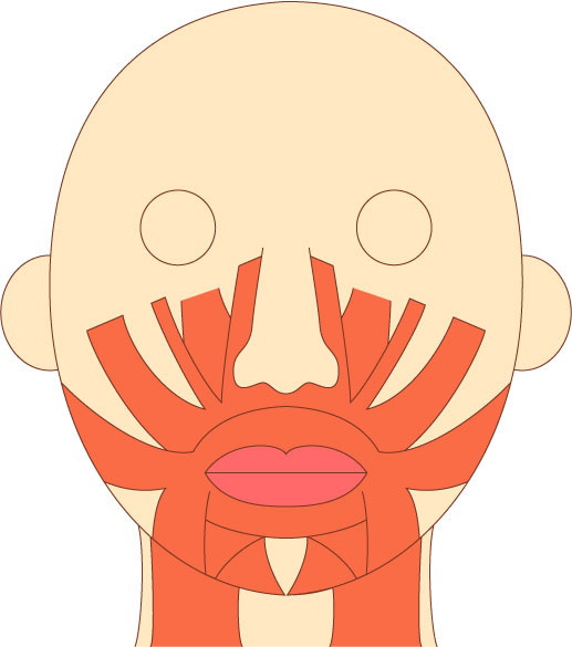 顔の皮膚の裏側には、表情筋と呼ばれる筋肉があります。この表情筋という筋肉は、日常生活ではほとんど使うことがない筋肉なのです。筋肉というのは、使わなければ硬くなってしまいます。その硬くなった筋肉が縮んで重くなり、下に垂れ下がってしまうのがたるみなのです。